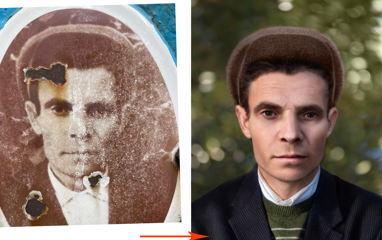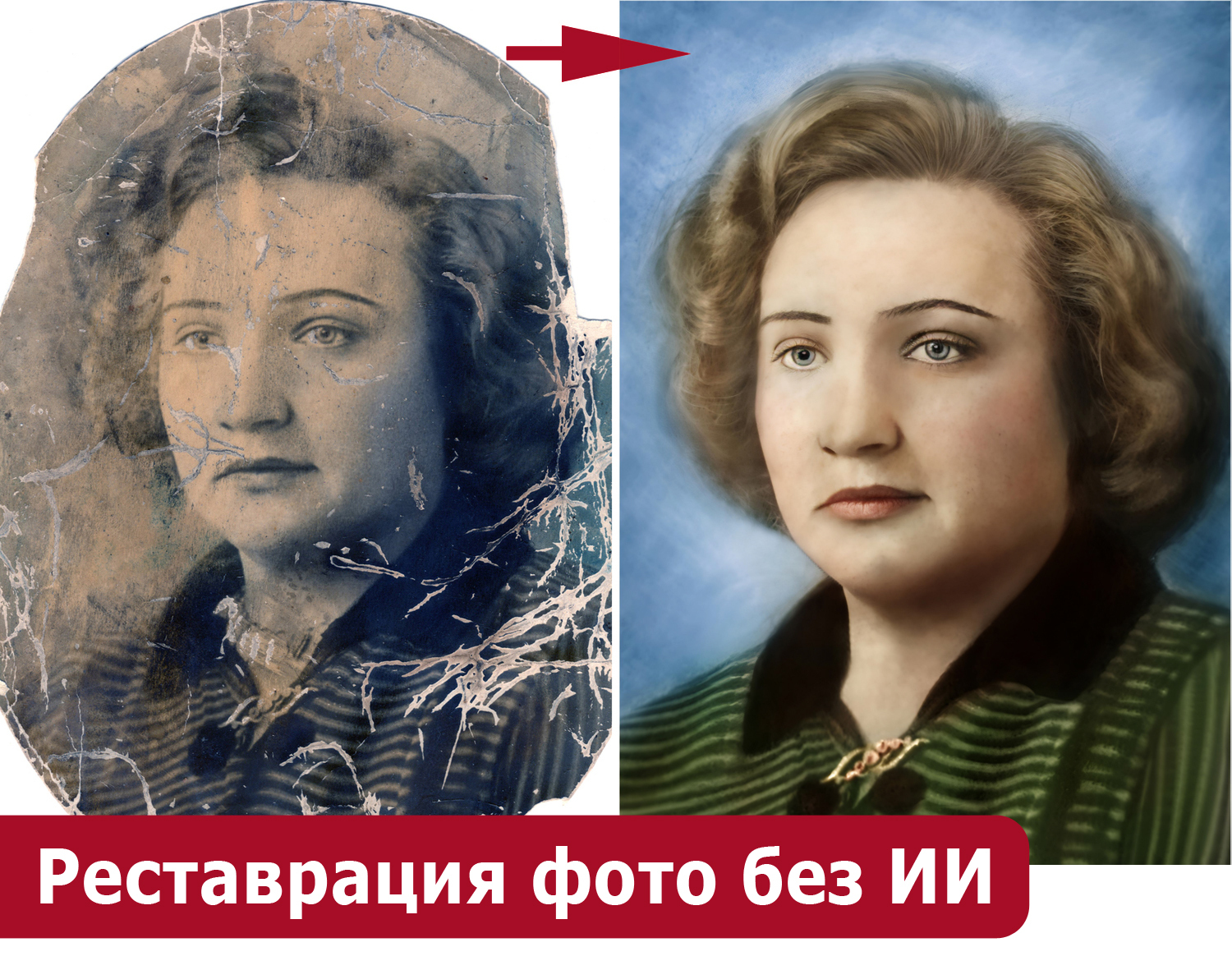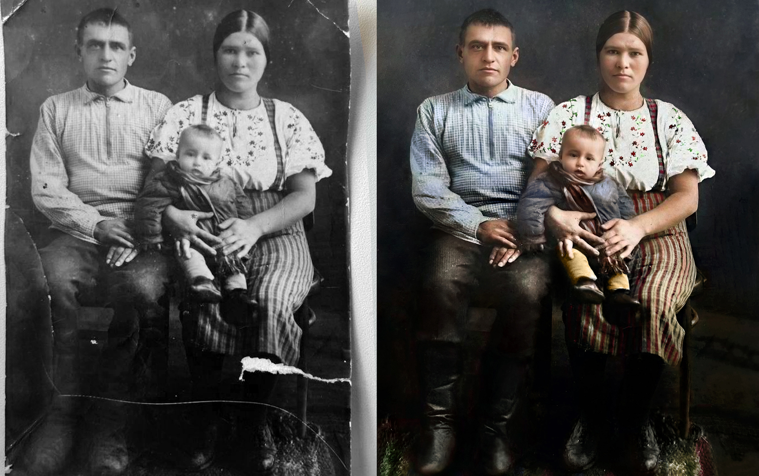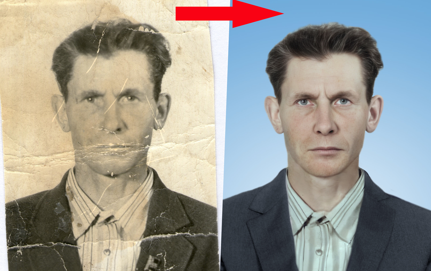 Мы восстанавливаем старые или поврежденные фотографии, сохраняем максимальное сходство.